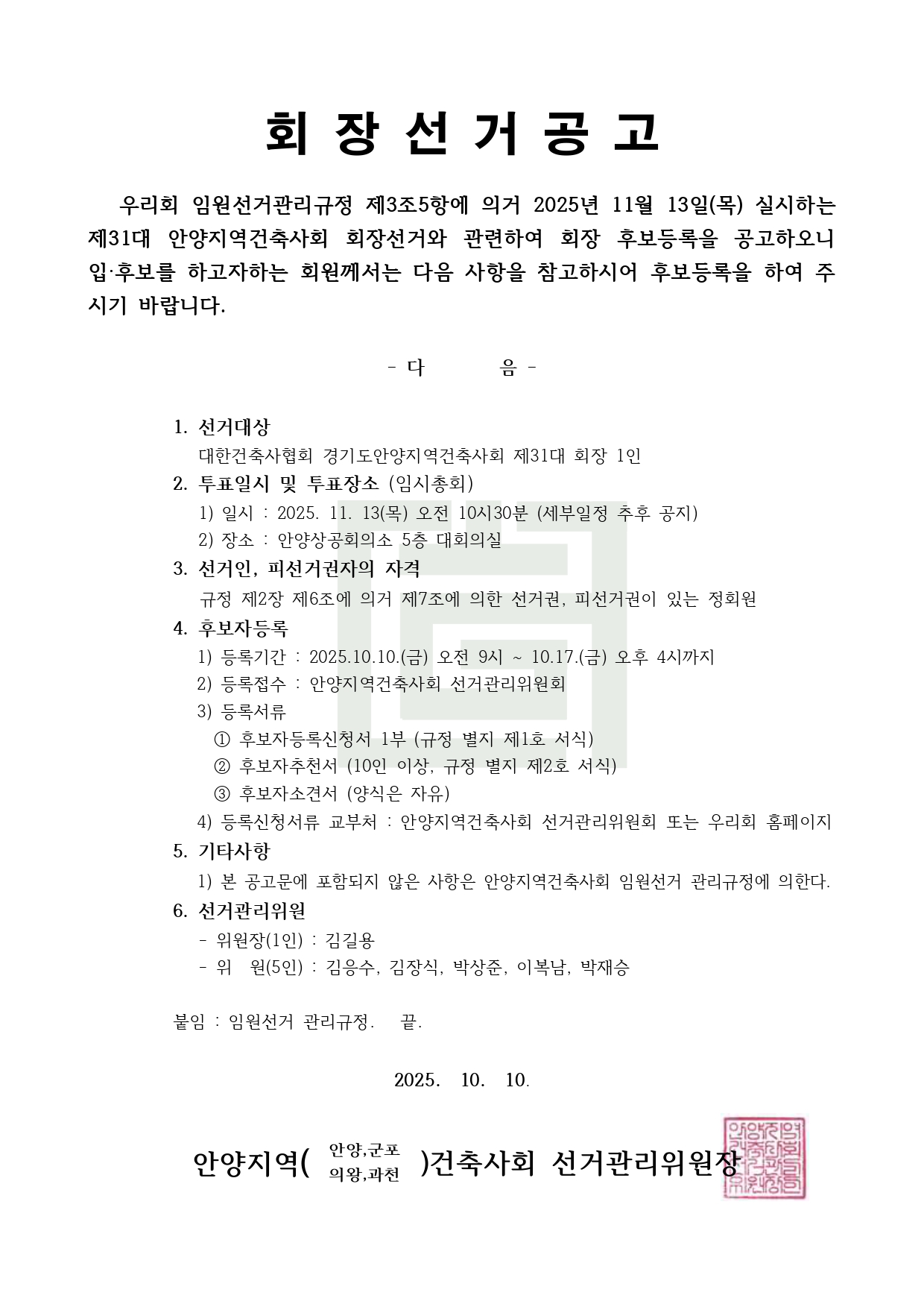 경기도건축사회 60주년 기념 걷기행사 (‘25.10.24)로 인한 임시 휴무 알림2025-10-152025 한국건축산업대전 연계 건축사실무교육 실시 안내 [개별신청]2025-10-14경기도 해체공사감리자 및 건축물관리 점검기관 명부(_25.9월말 기준) 통보 알림2025-10-14